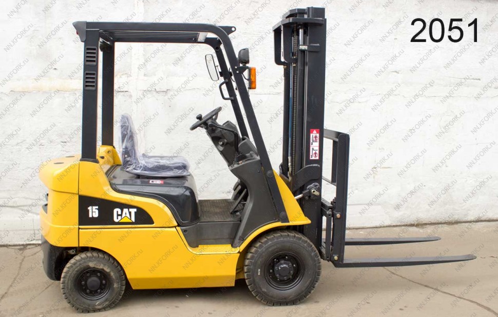 Дизельный автопогрузчик Caterpillar Б/У с интентарным номером 2051 2011 года выпуска. Состояние - Отличное. Имеет грузоподъемность 1500 кг. Гарантия: 6 мес или 800 м/час.