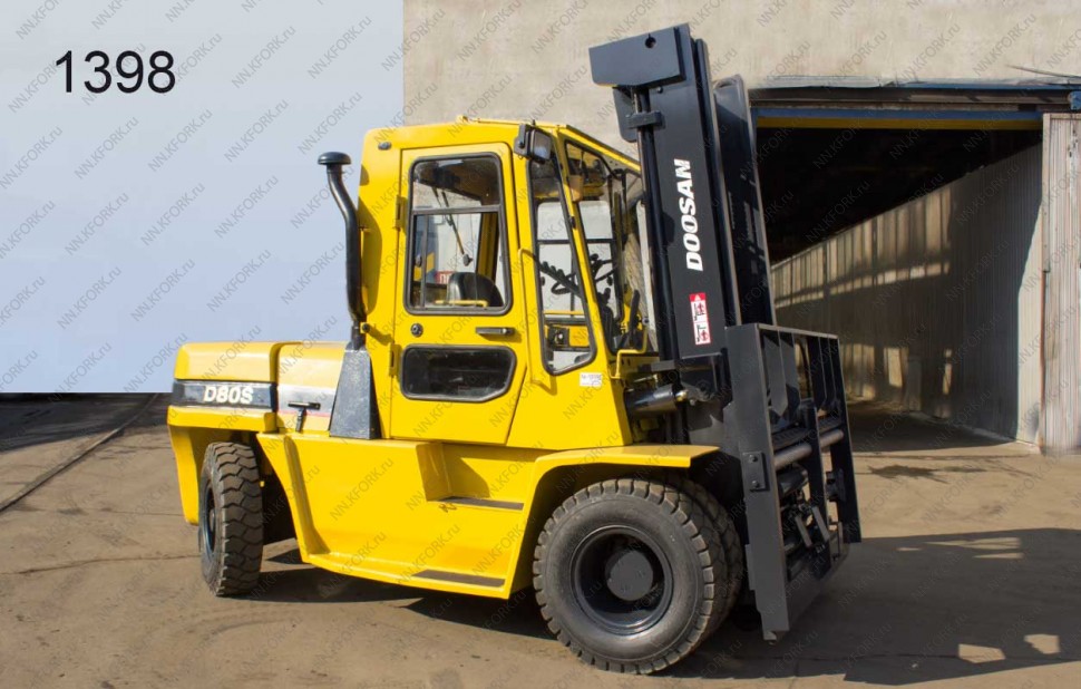 Дизельный автопогрузчик Doosan Б/У с интентарным номером 1398 2006 года выпуска. Состояние - Хорошее. Имеет грузоподъемность 8000 кг. Гарантия: 3 мес или 500 м/час.
