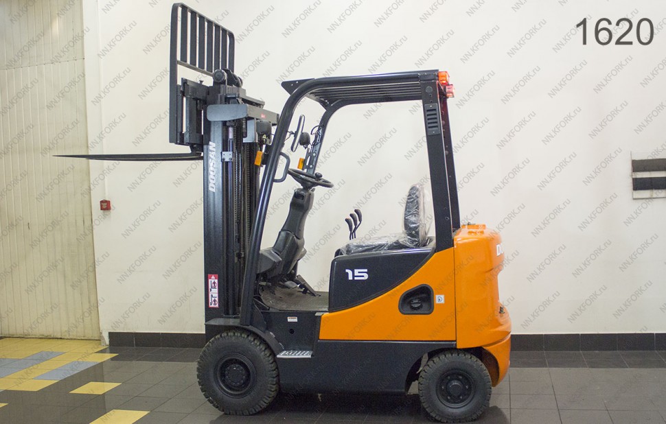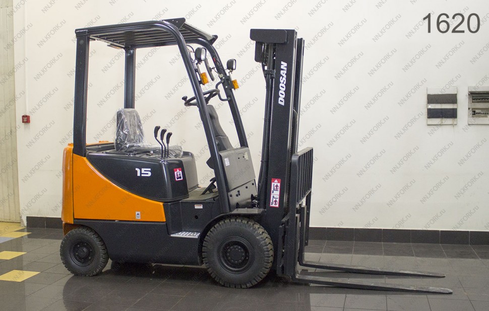 Дизельный автопогрузчик Doosan Б/У с интентарным номером 1620 2012 года выпуска. Состояние - Хорошее. Имеет грузоподъемность 1500 кг. Гарантия: 3 мес или 500 м/час.