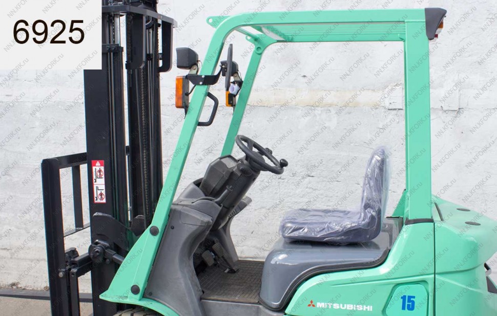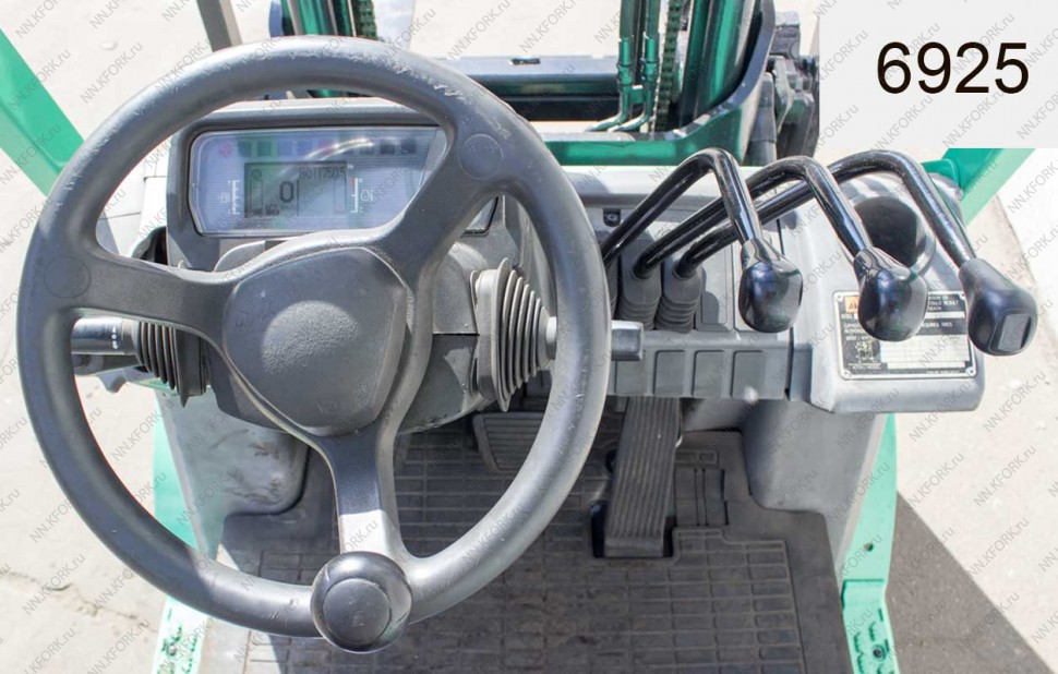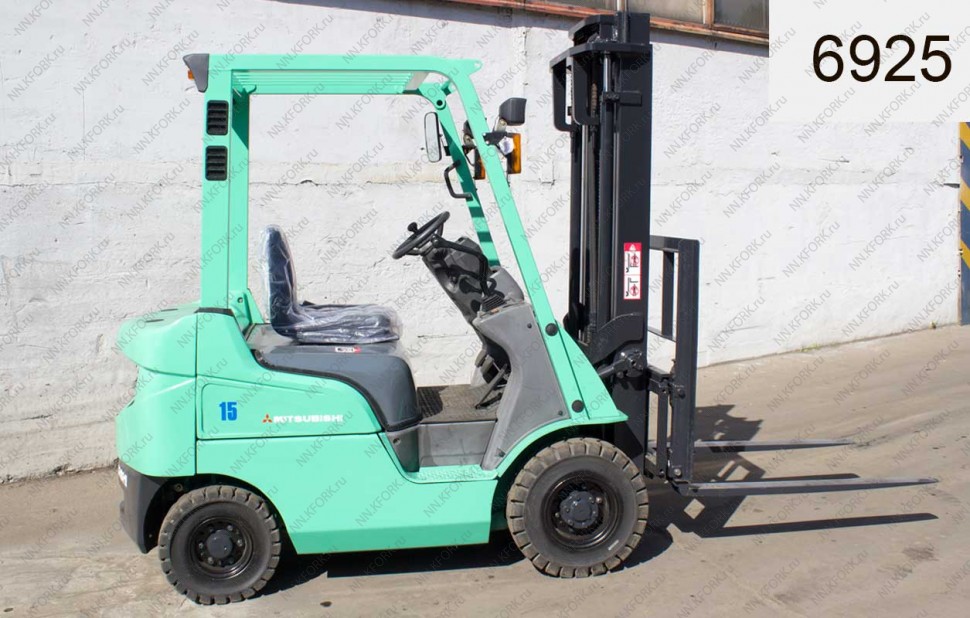 Дизельный автопогрузчик Mitsubishi Б/У с интентарным номером 6925 2011 года выпуска. Состояние - Хорошее. Имеет грузоподъемность 1500 кг. Гарантия: 4 мес или 500 м/час.