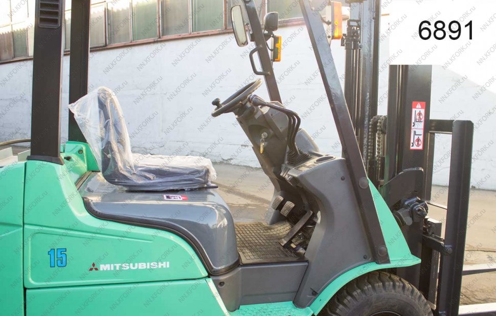 Газ-Бензиновый автопогрузчик Mitsubishi Б/У с интентарным номером 6891 2007 года выпуска. Состояние - Хорошее. Имеет грузоподъемность 1500 кг. Гарантия: 4 мес или 500 м/час.