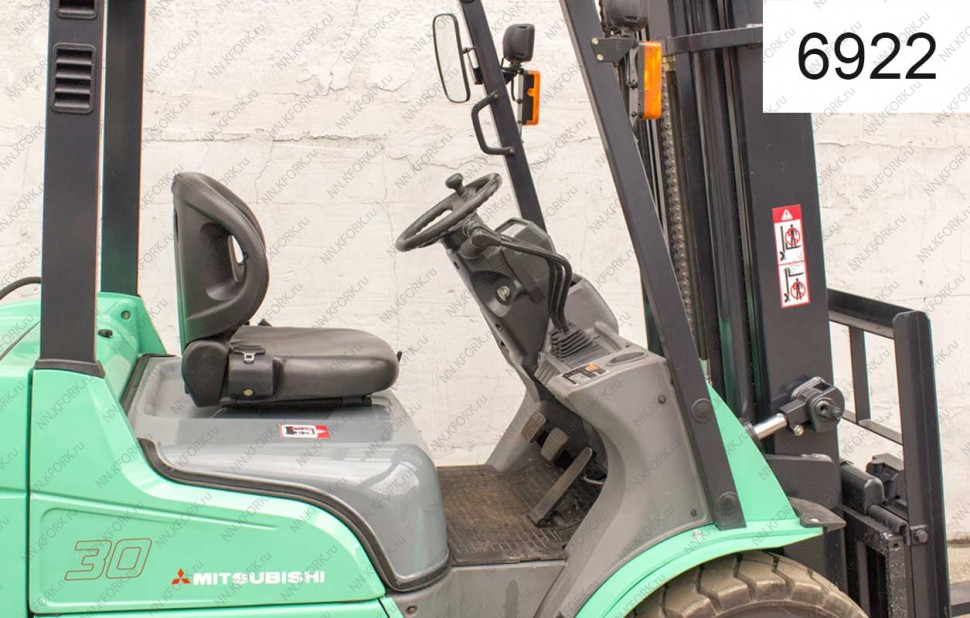 Газ-Бензиновый автопогрузчик Mitsubishi Б/У с интентарным номером 6922 2007 года выпуска. Состояние - Отличное. Имеет грузоподъемность 3000 кг. Гарантия: 6 мес или 800 м/час.