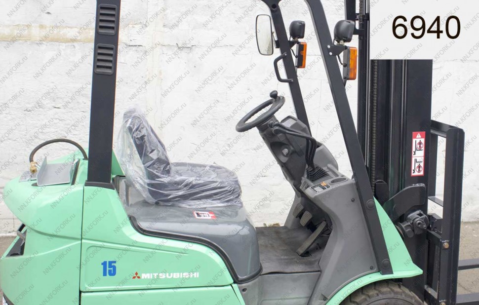 Газ-Бензиновый автопогрузчик Mitsubishi Б/У с интентарным номером 6940 2008 года выпуска. Состояние - Хорошее. Имеет грузоподъемность 1500 кг. Гарантия: 3 мес или 500 м/час.