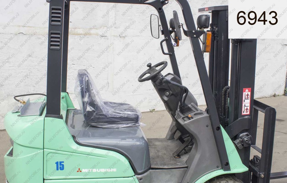 Газ-Бензиновый автопогрузчик Mitsubishi Б/У с интентарным номером 6943 2007 года выпуска. Состояние - Хорошее. Имеет грузоподъемность 1500 кг. Гарантия: 4 мес или 500 м/час.