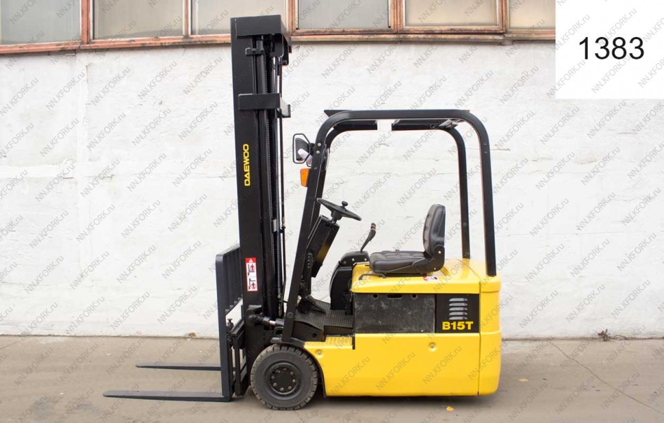 Электрический погрузчик Daewoo Б/У с интентарным номером 1383 2004 года выпуска. Состояние - Хорошее. Имеет грузоподъемность 1500 кг. Гарантия: 3 мес или 500 м/час.