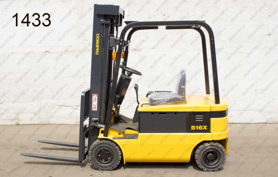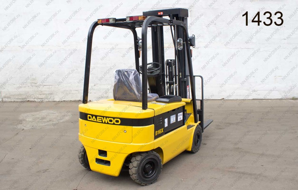 Электрический погрузчик Daewoo Б/У с интентарным номером 1433 2004 года выпуска. Состояние - Хорошее. Имеет грузоподъемность 1600 кг. Гарантия: 3 мес или 500 м/час.