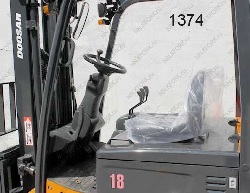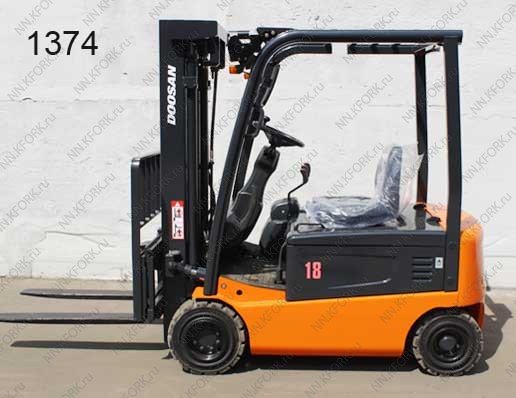 Электрический погрузчик Doosan Б/У с интентарным номером 1374 2007 года выпуска. Состояние - Отличное. Имеет грузоподъемность 1800 кг. Гарантия: 6 мес или 800 м/час.