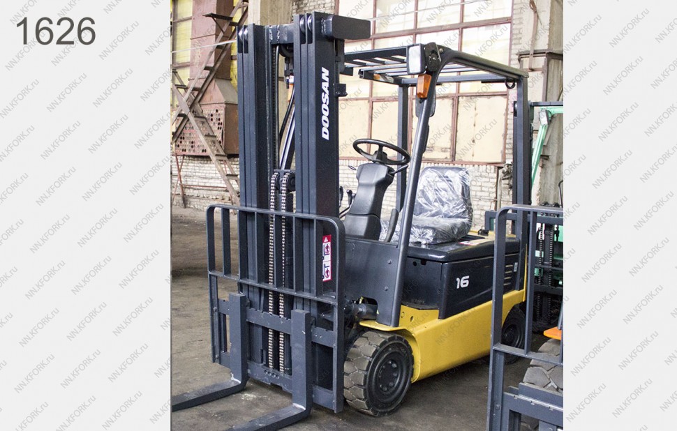 Электрический погрузчик Doosan Б/У с интентарным номером 1626 2006 года выпуска. Состояние - Хорошее. Имеет грузоподъемность 1600 кг. Гарантия: .