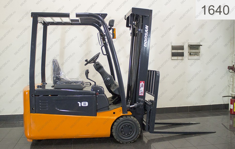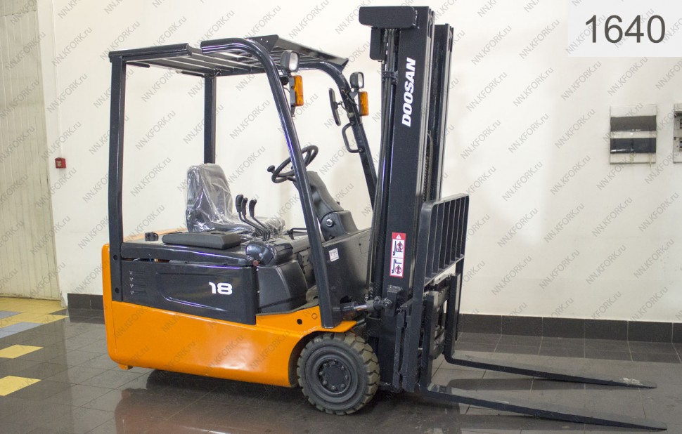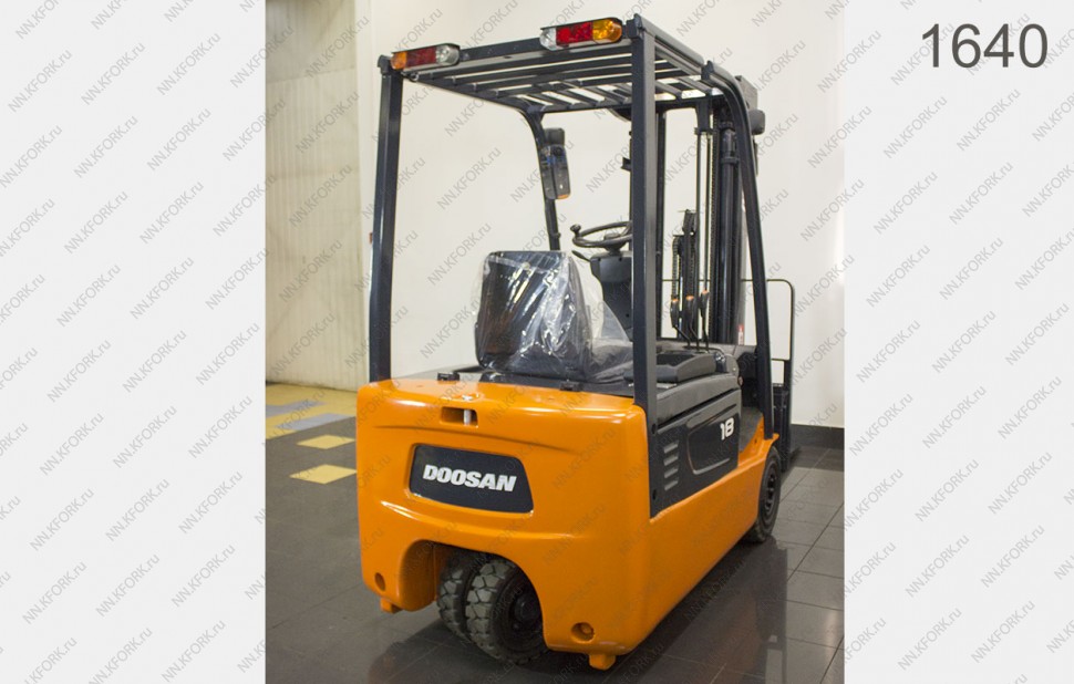 Электрический погрузчик Doosan Б/У с интентарным номером 1640 2012 года выпуска. Состояние - Хорошее. Имеет грузоподъемность 1750 кг. Гарантия: .