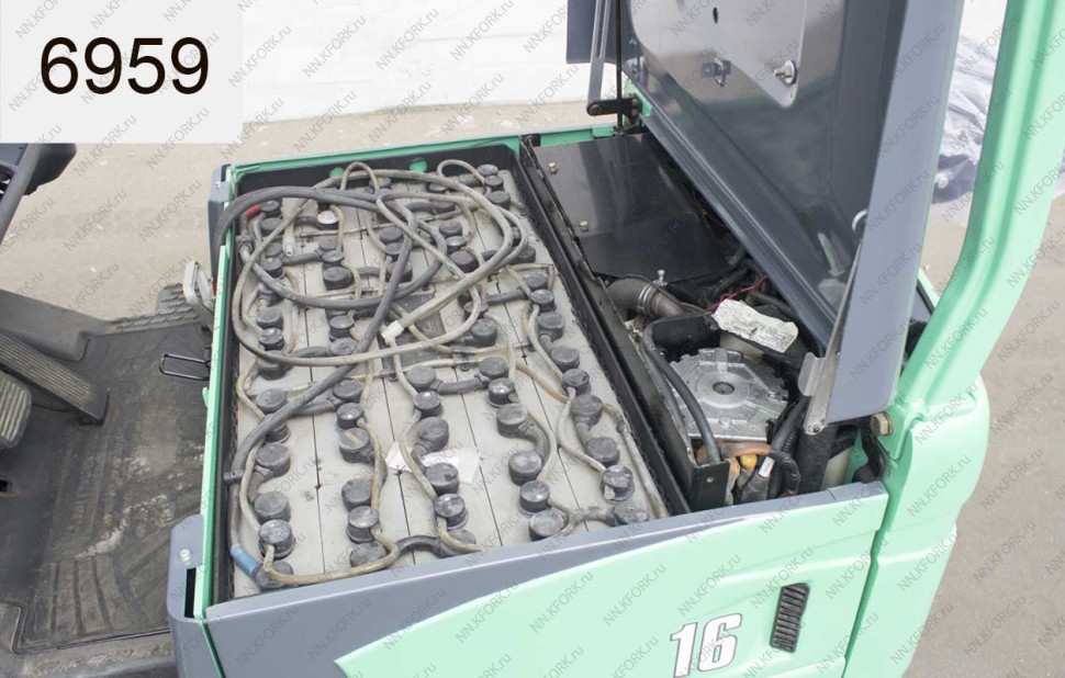 Электрический погрузчик Mitsubishi Б/У с интентарным номером 6959 2007 года выпуска. Состояние - Хорошее. Имеет грузоподъемность 1600 кг. Гарантия: 1 мес или 200 м/час.
