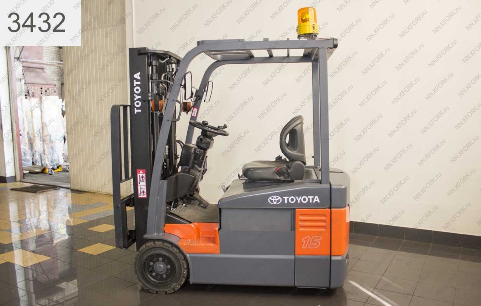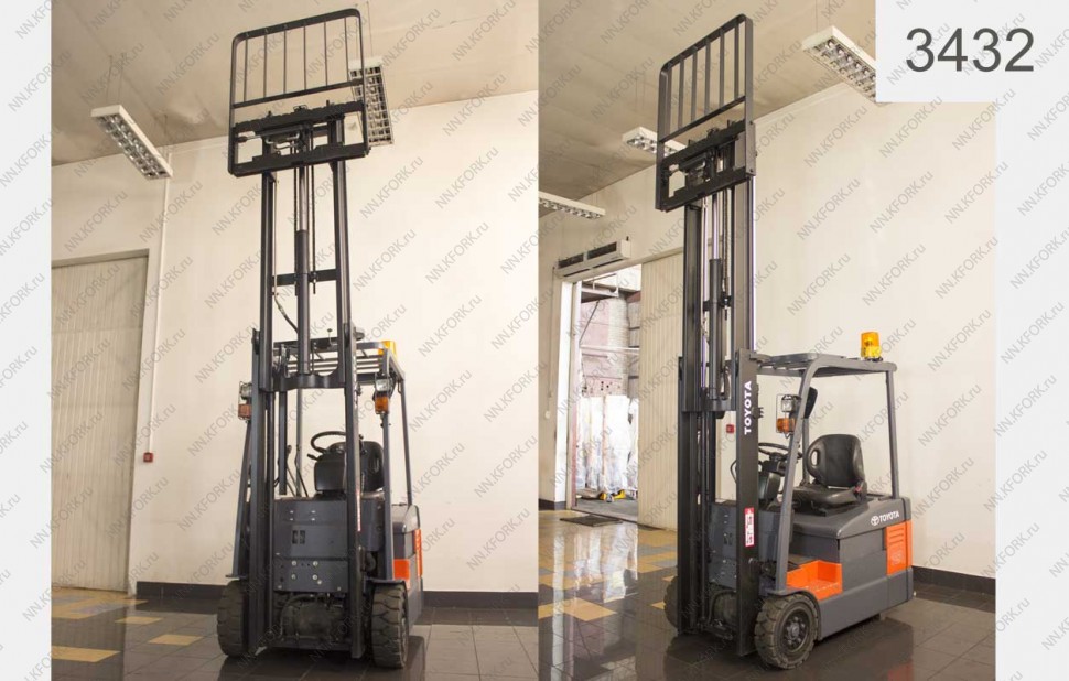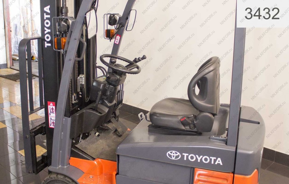Электрический погрузчик Toyota Б/У с интентарным номером 3432 2013 года выпуска. Состояние - Хорошее. Имеет грузоподъемность 1500 кг. Гарантия: 3 мес или 500 м/час.