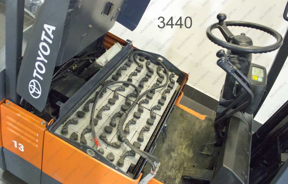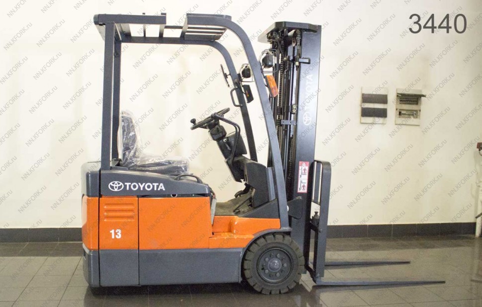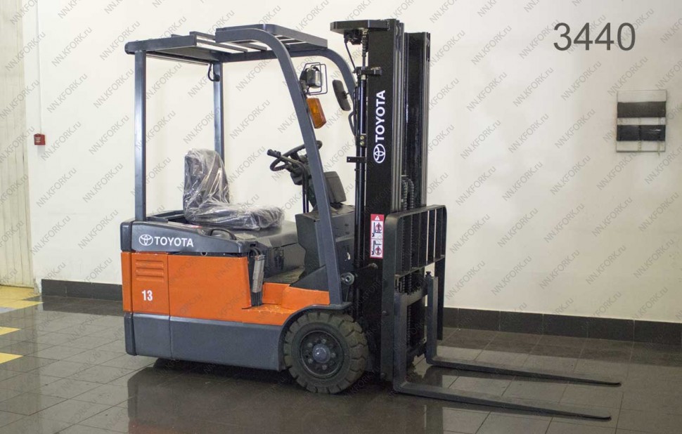 Электрический погрузчик Toyota Б/У с интентарным номером 3440 2003 года выпуска. Состояние - Хорошее. Имеет грузоподъемность 1300 кг. Гарантия: 3 мес или 500 м/час.